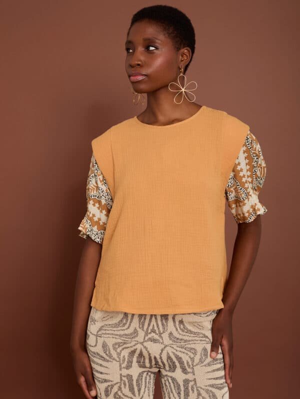 Camiseta bimateria bambula algodón hombreras con bordado.