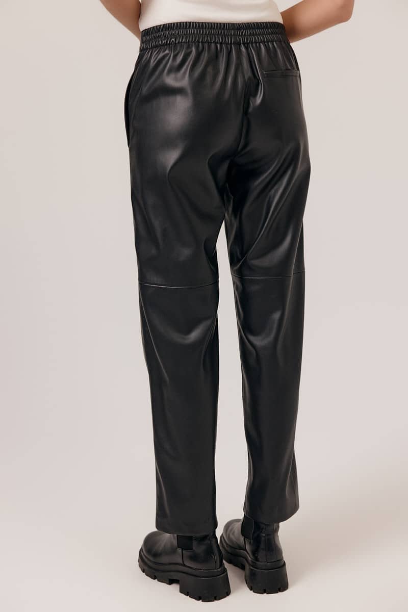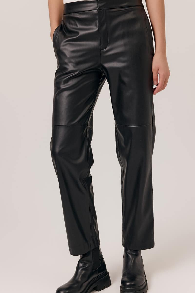 Pantalones ajustados de piel sintética. Cintura elástica, corte ajustado con inserciones cómodas.