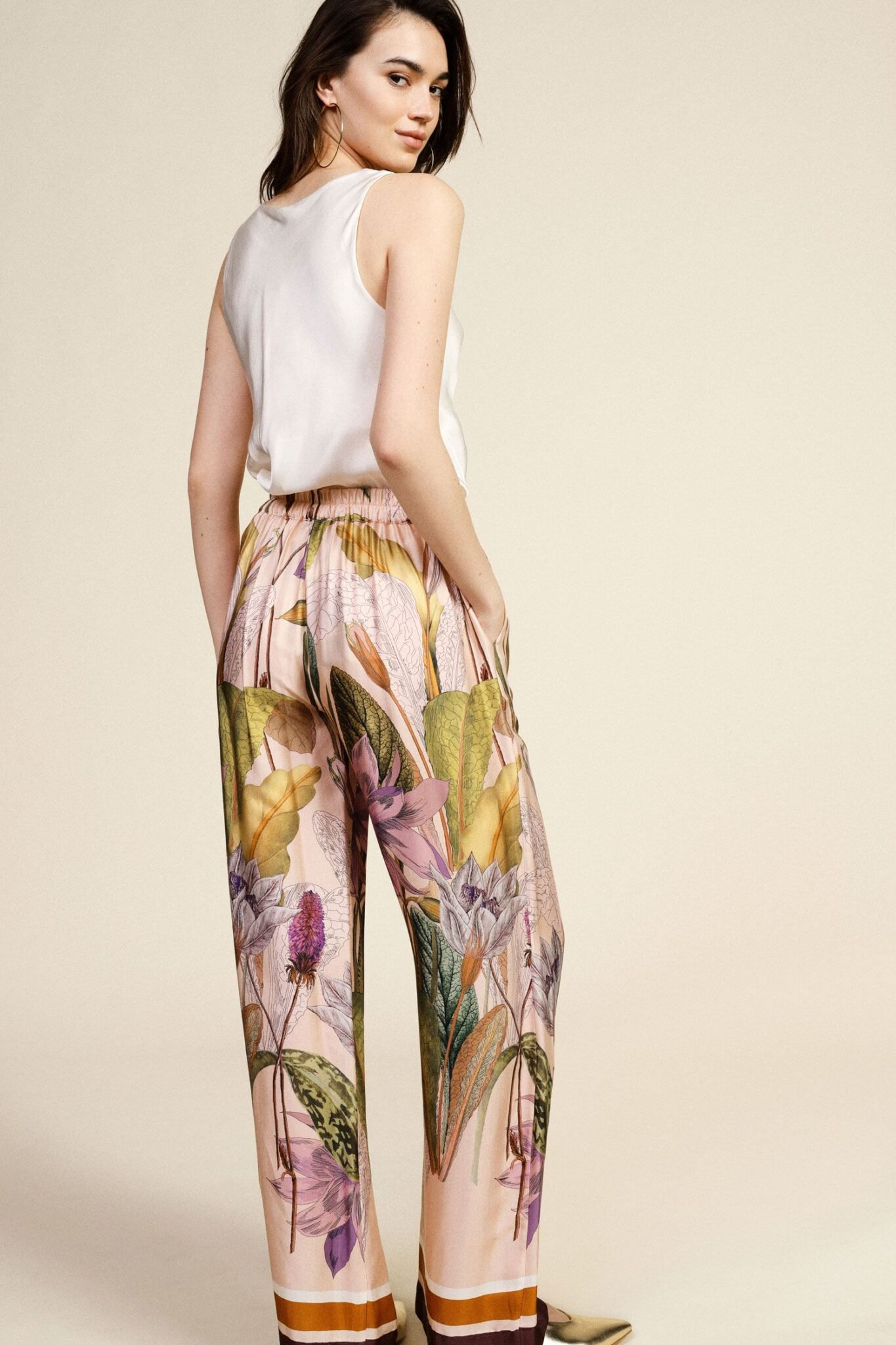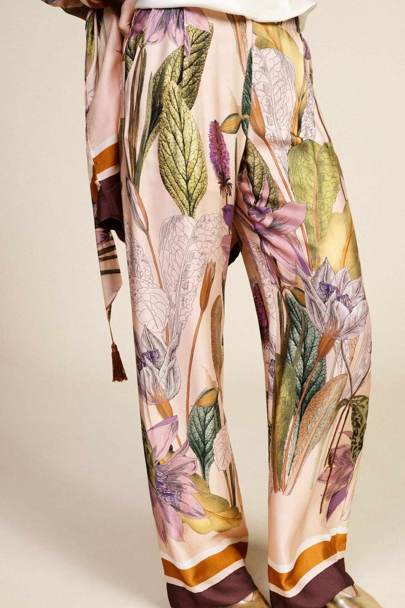 Déjate envolver por estos pantalones palazzo de talle alto y pierna ancha con estampado botánico.