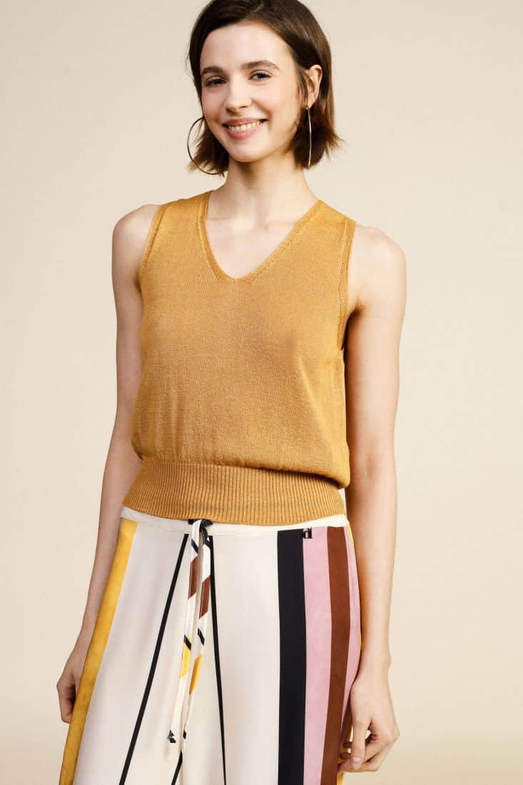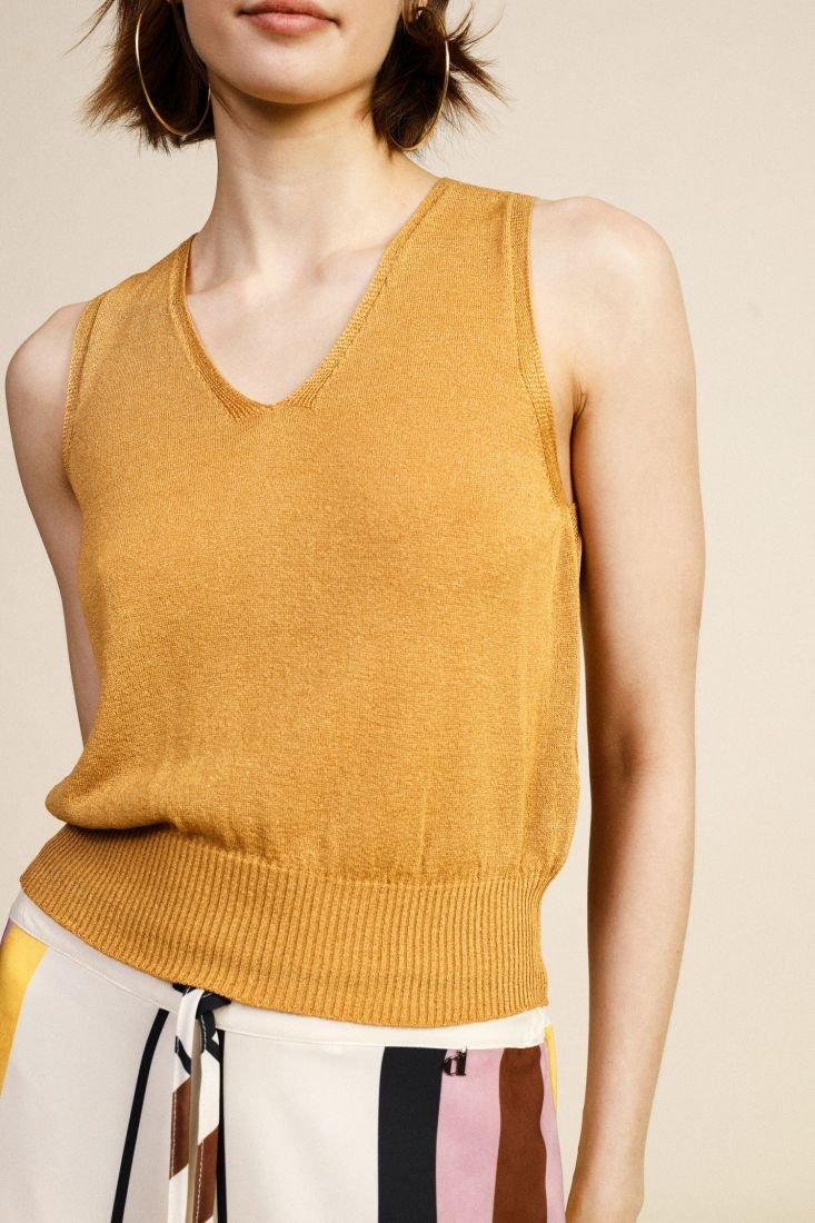 Ideal para las que buscan un estilo femenino y fresco, este top sin mangas destaca la silueta con un bajo elástico que aporta comodidad y sujeción. El escote en v aporta ligereza y lo hace perfecto para combinar con faldas o pantalones y acompañarte en cualquier ocasión diaria.