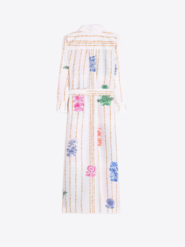 Vestido largo de corte camisero con estampado bambú multicolor.